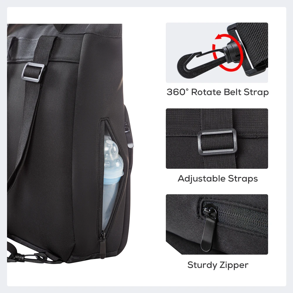 diaper bag, mommy diaper bag, black diaper bag, stylish baby bag, changing mat bag, baby care bag, parent essentials bag, durable diaper bag, multi-pocket diaper bag, travel diaper bag, unisex diaper bag, large baby bag, comfortable diaper bag, baby organizer bag, newborn diaper bag, baby gear bag, outdoor baby bag, parent travel accessory, multipurpose diaper bag, daily use diaper bag