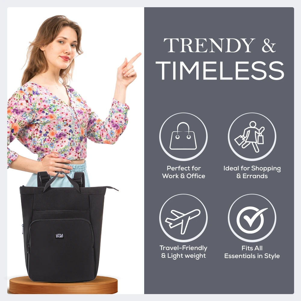 Designed for parents who value both style and functionality, the Little Story Mommy Diaper Bag in Black offers ample storage for all your baby essentials. Featuring multiple compartments and a foldable changing mat, it ensures you’re always prepared when out with your child. The sleek black color gives it a timeless look, making it suitable for both moms and dads.