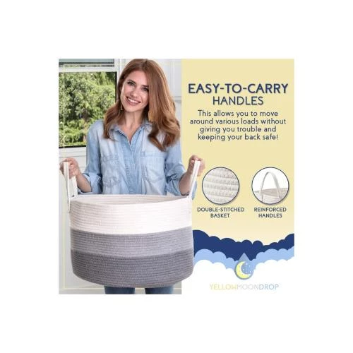 little story basket, multipurpose basket, laundry caddy basket, grey cotton rope basket, nursery organizer, eco-friendly home decor, large storage basket, toy storage basket, portable laundry basket, home organization basket
