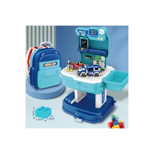 Little Story 2-in-1 Police Station Role Play Set with Police Car & 219 Blocks -Blue School Bag by SAMBOX