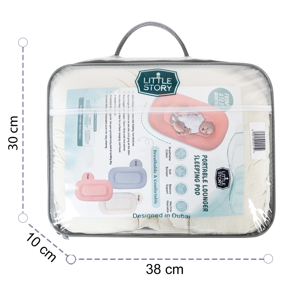 Little Story Portable Baby Lounger Sleeping Pod - Grey | Soft & Ergonomic Nest for Newborns