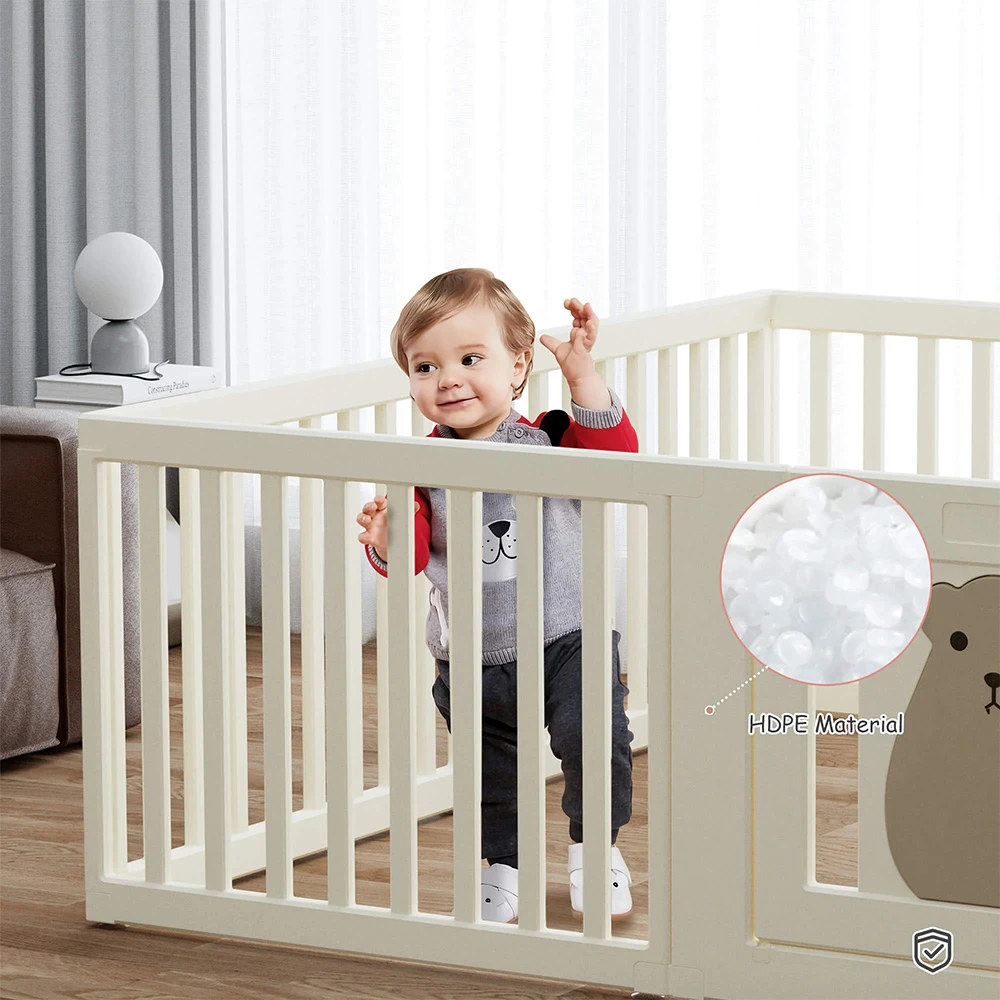 The Little Story portable playpen with door in bear white offers a safe, enclosed play space for little ones while adding a touch of charm to your home. Featuring a secure locking door, it allows easy access for parents while ensuring children remain safely inside. The sturdy frame and smooth-finish panels are designed to withstand daily play while keeping safety a top priority.