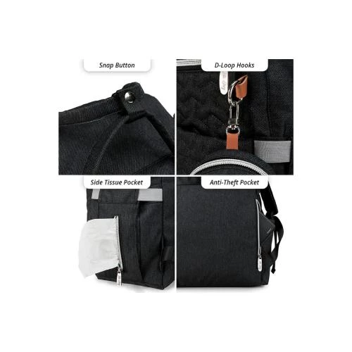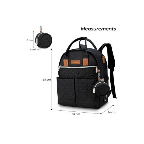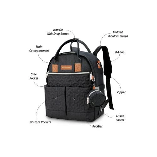 Little Story Quilted Diaper Backpack with Pacifier Bag & Stroller Hooks -Black