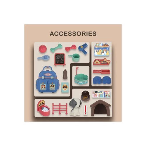 Little Story Role Play Animal Care Pet House Toy Set School Bag (26 Pcs) -Blue, 3-In-1 Mode by SAMBOX