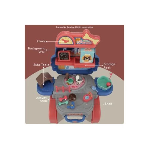 little story pet house, role play toy set, animal care toy, pet house school bag, kids educational toys, social skill development toy, creative playset, 3-in-1 kids toy, mobile pet house toy, childrens role play gift