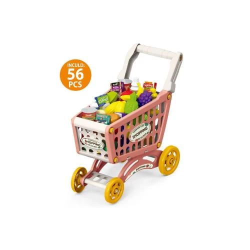 Little Story Role Play Market Shopping Cart Toy Set (56 Pcs) -Pink Supermarket Pretend Play Kit by SAMBOX