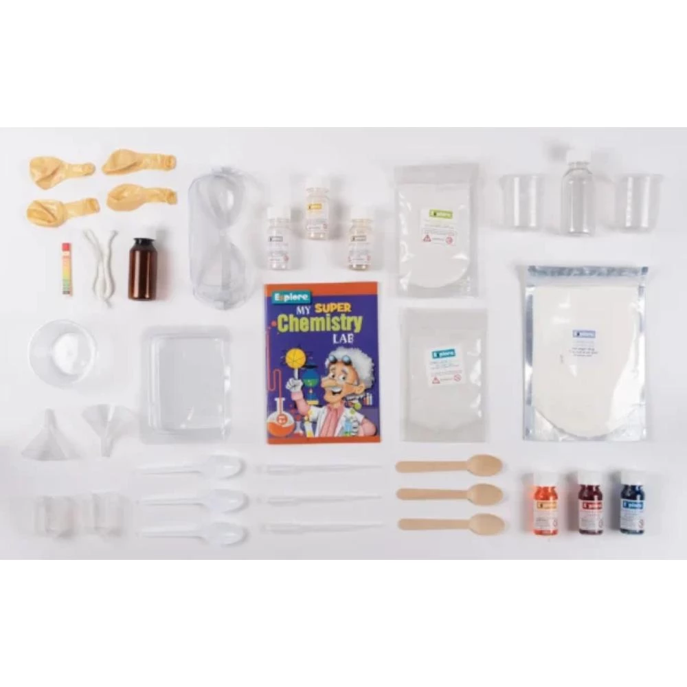 Introduce kids to the exciting world of science with the My Super Chemistry Lab - DIY Science Kit, packed with fun and educational experiments. Young scientists can blow balloons using chemical reactions, create colorful lava lamps, make bouncy guar gum balls, and explore other fascinating activities-all while learning the basics of chemistry in a safe and engaging way. This hands-on kit is designed to encourage curiosity, critical thinking, and creativity. Perfect for kids in Dubai, its an ideal gift for birthdays, school projects, or just fun learning at home.