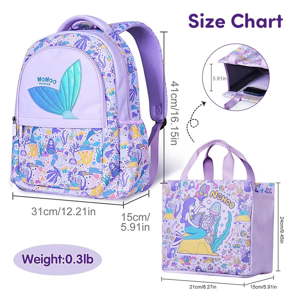school bag combo, mermaid design, purple backpack set, 16 inch backpack, mini handbag, water resistant, ergonomic straps, cushioned back, nohoo mermaid bag, functional school gear, matching accessory, durable material, lightweight school set, organized compartments, novelty combo, easy to clean, stylish school essentials, secure zipper, everyday backpack, coordinated handbag