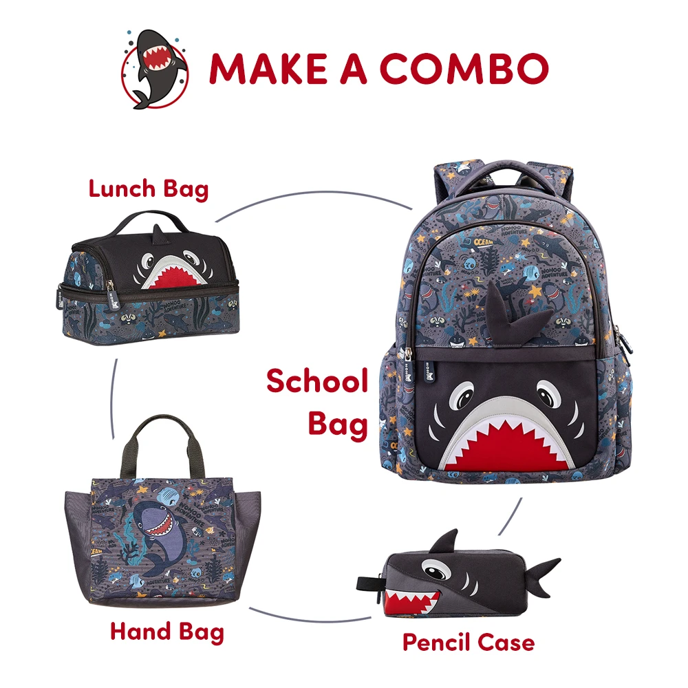 Nohoo Kids Tuition Bag / Hand Lunch Bag - Shark, Grey