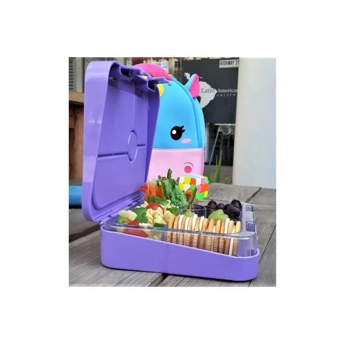 Nohoo Unicorn 3D Bag + Eazy Kids Purple Bento Lunch Box - Leakproof, BPA-Free, 6-Compartment Set