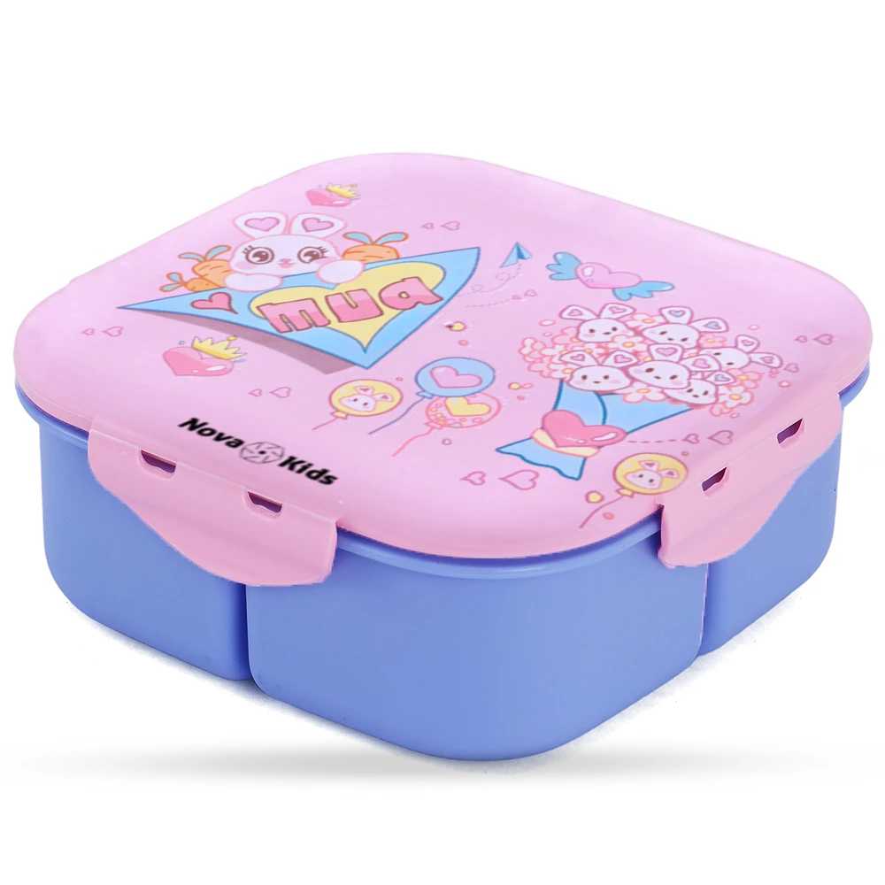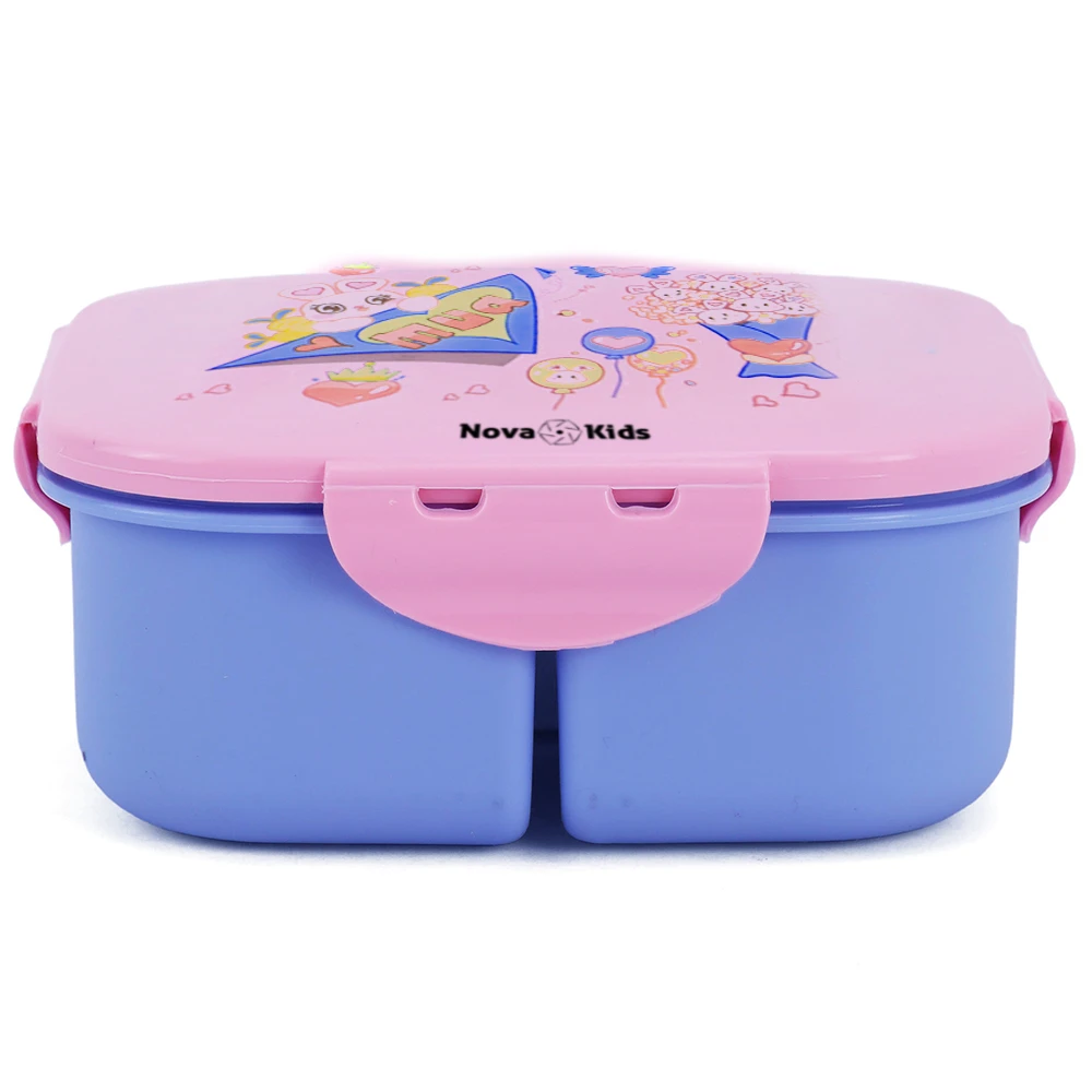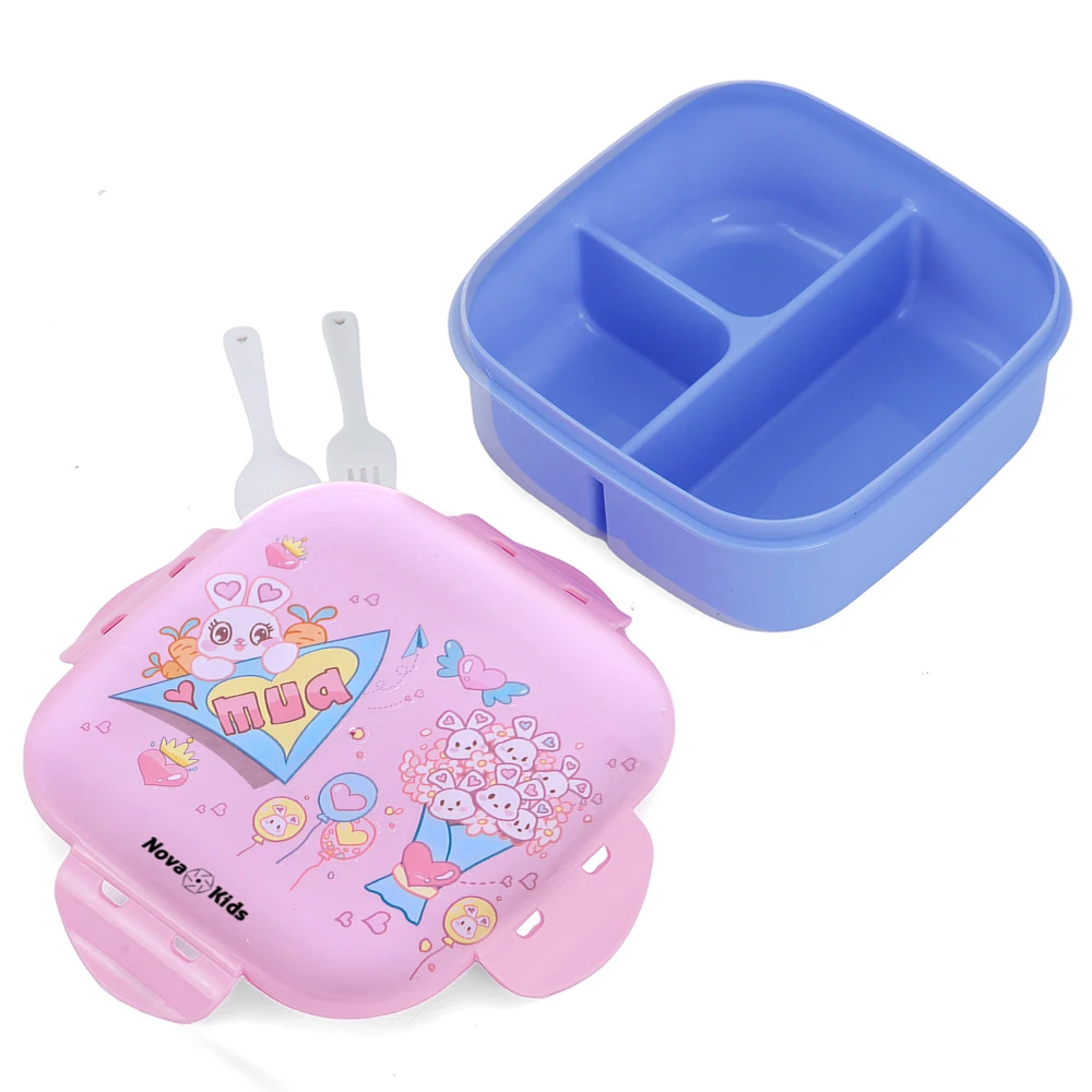 The Nova Kids square bento lunch box in love pink blends charming visuals with practical design. Equipped with three compartments and cutlery, it promotes organized, nutritious meals. Built from food-grade, BPA‑free, phthalate‑free materials, it delivers safe and clean food storage. Its clasp-lock lid features a silicon liner to help prevent leakage for thicker meals. Although spacious, it remains light to carry and easy to store. The soft pink hue and whimsical design bring a cheerful vibe to lunchtime, combined with an easy-clean and travel-friendly build.