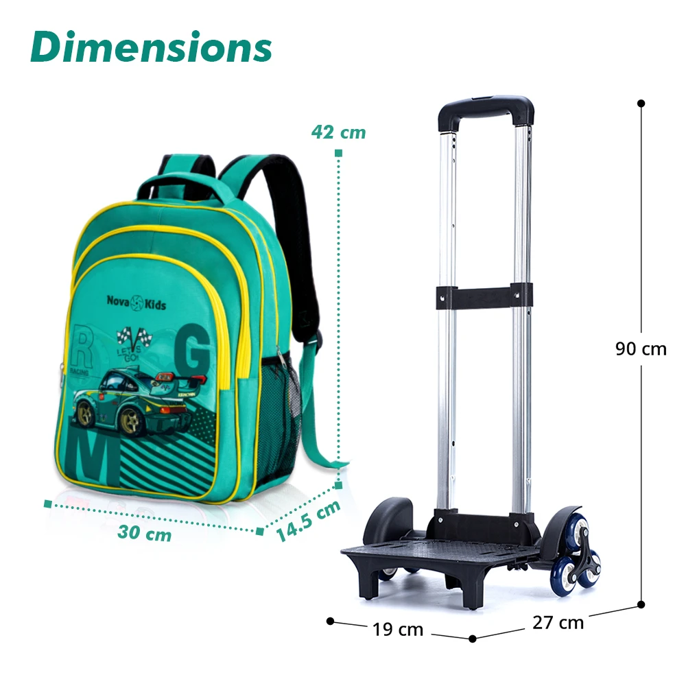 trolley school bag set, car racing design, green school bag, 16 inch school set, nova school trolley, rolling school bag, multi compartment bag, smooth wheel trolley, adjustable handle school bag, matching lunch bag, pencil case set, organized school storage, durable school luggage, stylish school gear, backpack trolley combo, novelty school set, travel friendly school bag, kids school essentials, coordinated school accessories, practical school set