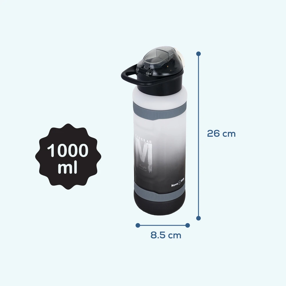 black water bottle, kids bottle, nova brand, 1000ml bottle, straw drink bottle, leakproof, bpa free, school water bottle, durable drinkware, reusable water bottle, sports hydration, easy carry loop, flip spout, hygienic straw, spill safe, lightweight plastic bottle, travel drinkware, kids bottle with straw, stylish kids bottle, eco bottle