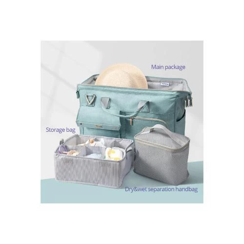 sunveno 3in1 travel bag, green diaper bag, oversized travel bag, travel diaper bag set, diaper caddy bag, waterproof messy bag, multi-pocket diaper bag, unisex travel bag, pu leather trim bag, stroller strap travel bag