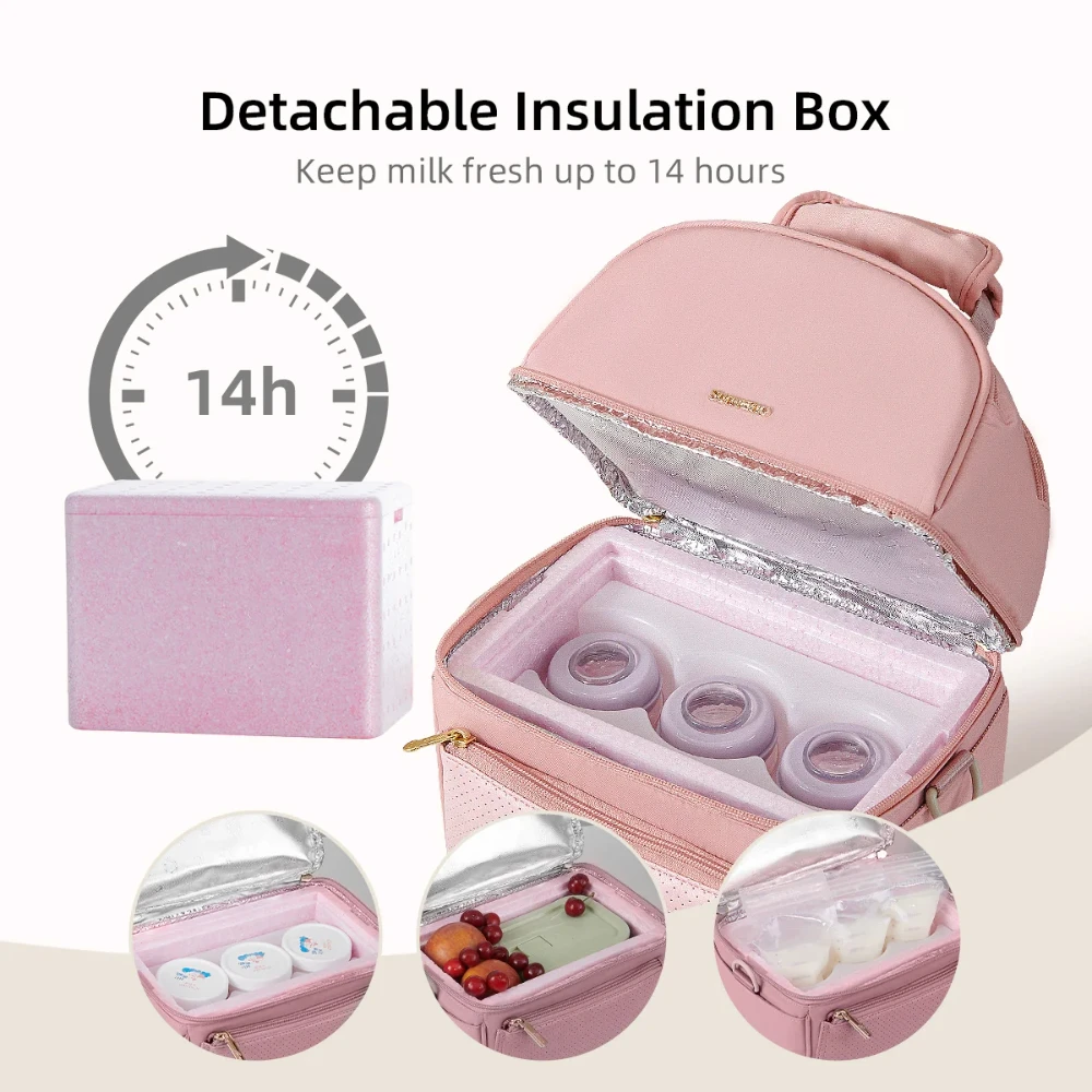 sunveno cooler bag, breastmilk storage bag, pink milk cooler, insulated milk bag, baby feeding travel bag, milk bottle cooler, breastfeeding accessories, portable milk cooler, baby bottle bag, milk chiller bag, stylish mom cooler bag, detachable insulation box, compact breastmilk bag, thermal milk storage, daycare milk bag, travel nursing bag, insulated lunch bag for moms, milk cooler with compartments, milk storage for working moms, pump bag for breastfeeding moms