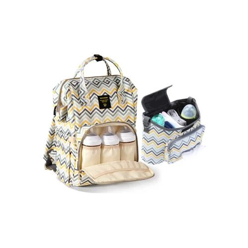 sunveno diaper bag, diaper bag with usb port, stroller organizer, insulated bottle holders, waterproof diaper bag, stylish baby bag, yellow wave print diaper bag, multi-pocket diaper bag, stroller accessories, lightweight diaper bag