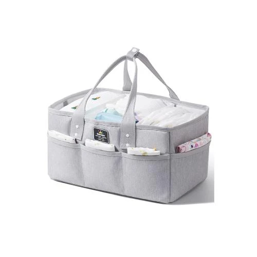 The Sunveno Diaper Caddy Organizer with 100 Disposable Changing Mats in Grey by SAMBOX is the ultimate portable storage solution for busy parents. Crafted from durable polyester, this multifunctional diaper caddy is perfect for keeping baby essentials like rompers, nappies, wipes, creams, pacifiers, toys, and milk bottles well-organized and always within reach. Its foldable and lightweight design, combined with grip handles and a secure button closure, makes it easy to carry from room to room, on day trips, or while traveling. The internal partitions are movable, letting you customize compartments to suit your needs, while the wide openings are designed for single-handed access-ideal for quick nappy changes. Included are 100 large, soft, and absorbent disposable diaper changing mats (45x33 cm), perfect for changing your baby on-the-go or during those late-night emergencies. Whether you use it as a crib-side organizer or pack it in your luggage for holidays, this stylish and practical caddy makes an excellent gift for baby showers or new moms.