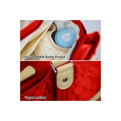 Sunveno Fashion Diaper Tote Bag -Red Stylish Maternity Organizer with 11 Pockets by SAMBOX