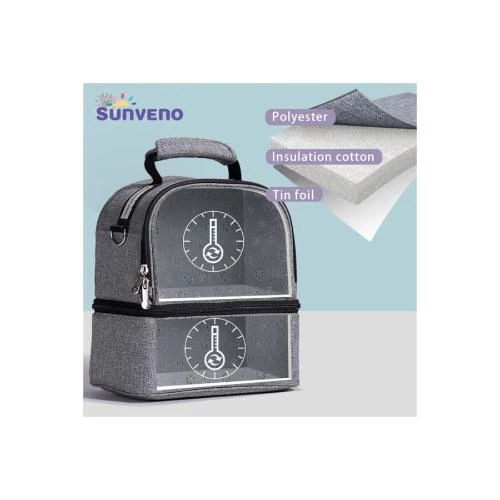 insulated office lunch bag, lunch tote with compartments, hot and cold food carrier, thermal lunch bag, sunveno lunch bag grey, dual compartment lunch bag, aluminum foil lunch box, waterproof lunch tote, lunch bag for travel, thermal lunch bag for work