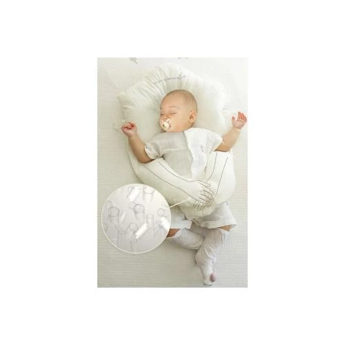 The Sunveno Mammas Hug Head Shaper Pillow by SAMBOX is expertly crafted to provide your baby with the comforting sensation of a mothers warm embrace while helping to maintain a perfect head shape. Ideal for babies aged 0 to 18 months, this pillow features a soft filling of high-quality polymer hose with anti-flat head properties and dry-cool technology to keep your babys head cool and comfortable throughout sleep. The breathable cotton outer material is gentle on sensitive baby skin, ensuring safety and comfort. Lightweight and easy to clean, this pillow acts as a cozy bed bumper, promoting sound sleep and making it the perfect companion for your newborns restful moments. It is both hand and machine washable for convenient care.