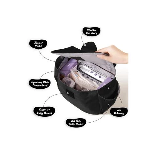 black stroller diaper bag, insulated diaper bag, sunveno diaper bag, maternity messenger bag, stylish baby bag, waterproof baby bag, black baby organizer, stroller hooks bag, baby bottle bag, diaper bag for moms