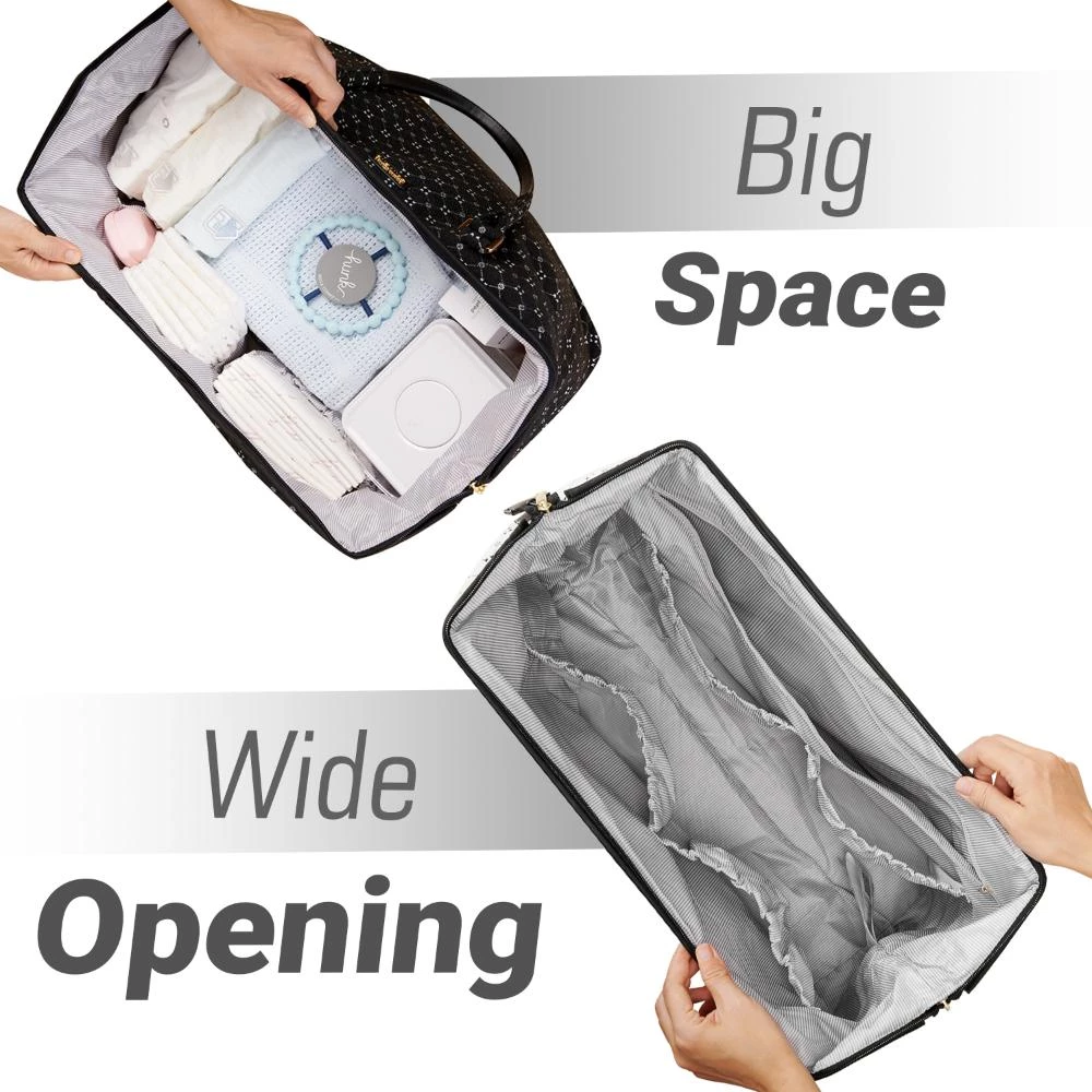 The Sunveno Mommy Fashion Diaper Bag in Black blends functionality with a modern fashion-forward design. This stylish bag serves as both a diaper organizer and a handbag, offering plenty of space with well-placed internal compartments. It features a wide opening and a flexible internal bottle chamber that keeps bottles upright and baby essentials easy to access. Designed with durable, waterproof polyester fabric, this bag resists dirt and scratches while remaining lightweight and easy to wipe clean. With built-in stroller hooks, a large diaper changing mat, a wet bag, and a storage pouch, it’s ideal for travel or full-day outings. The dedicated side pocket holds wipes securely and includes a zipper with an inner dispenser slot for convenient use. Whether you're heading to the gym, a weekend getaway, or simply running errands, this multipurpose bag transitions seamlessly from mom duty to lifestyle utility.