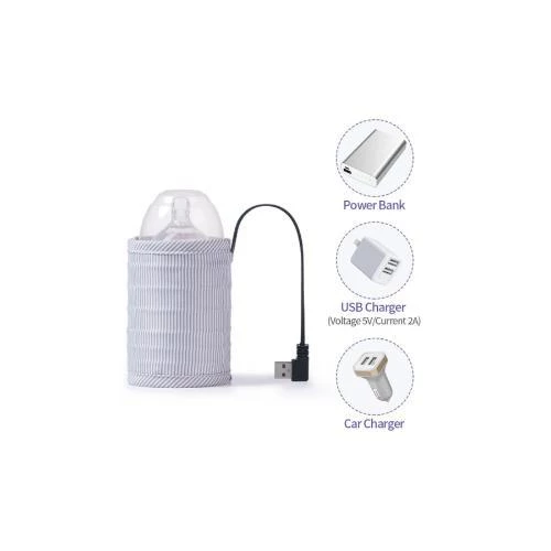 Sunveno Travel USB Milk Bottle Warmer -Portable Grey Velvet Insulated Baby Bottle Heater with USB Connection by SAMBOX