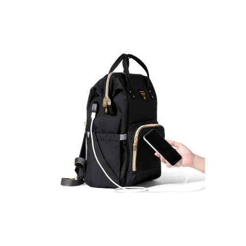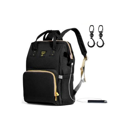 Sunveno XL Diaper Bag with USB Port and Stroller Hooks - Black