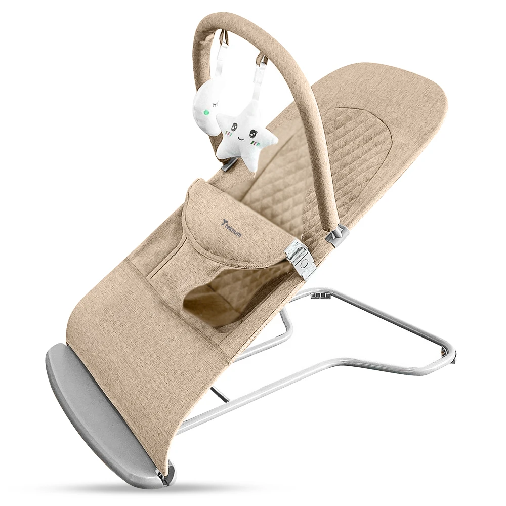baby bouncer, reclining seat, ivory bouncer, teknum infant gear, quilted fabric seat, washable cover, adjustable recline, padded safety belt, hanging toys, easy fold seat, lightweight baby seat, anti skid design, sensory development, comfortable reclining, compact storage, newborn to infant seat, versatile baby gear, practical baby bouncer, soothing ivory design, everyday baby product
