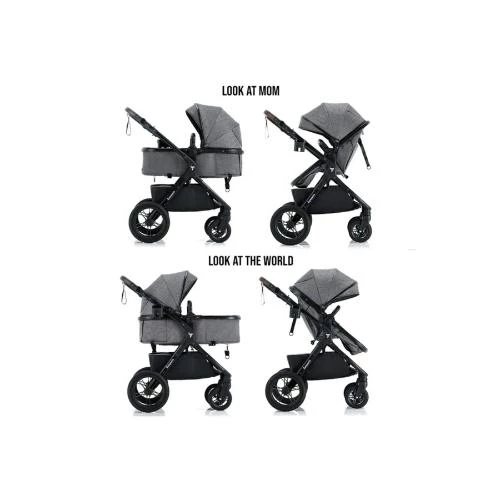 teknum 3in1 stroller, compacto travel stroller, dark grey baby stroller, air cabin stroller, foldable bassinet stroller, reversible baby stroller, shock absorbing stroller, big wheels baby pram, lightweight stroller newborn, tpe wheel stroller, stroller with mosquito net and foot cover, premium travel stroller