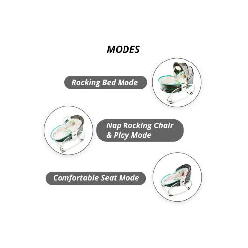 The Teknum 6-in-1 Cozy Rocker Bassinet in elegant Green by SAMBOX is a complete all-in-one comfort solution for your little one, from newborn to toddler stage. This multifunctional rocker bassinet easily transforms into six different modes-infant cot with wheels, rocking bassinet, rocking chair, cozy reclining chair, bedside crib, and portable baby basket-making it ideal for sleeping, playing, feeding, and traveling. Designed with safety in mind, it includes a secure belt system for every mode, along with a three-level backrest recline to suit your baby's growing needs. The soft, removable sleeping basket can be used independently for co-sleeping or travel and is lightweight and easy to carry. The included soothing vibration and music box features multiple calming melodies to help lull your baby into a restful sleep, while the playful grab toys offer extra entertainment. Its breathable materials, thoughtful design, and included mosquito net and awning ensure your baby stays cozy, safe, and protected whether at home or on the go. Easy to store and beautifully crafted, it's a thoughtful gift choice for new parents and a practical essential for everyday use.