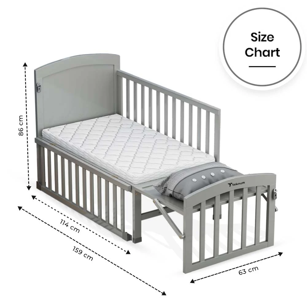 Teknum 7-in-1 Convertible Kids Bed & Bedside Crib with Mattress, Mosquito Net & Detachable Wheels - Grey