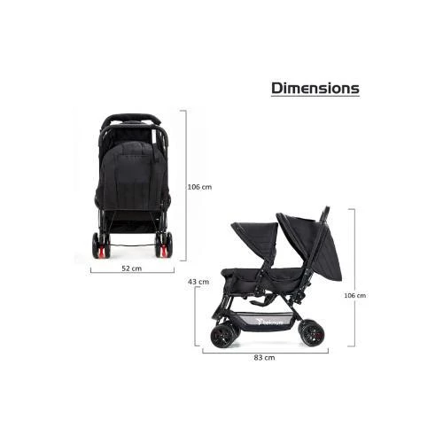 Teknum Double Baby Stroller - Black for Twins and Siblings