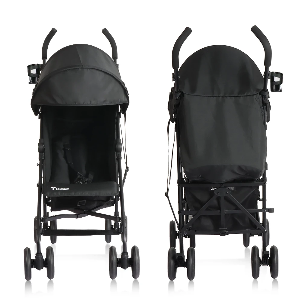 lightweight stroller, travel stroller, black stroller, compact baby stroller, teknum stroller, stroller with cup holder, daily use stroller, ergonomic stroller, urban baby gear, foldable stroller