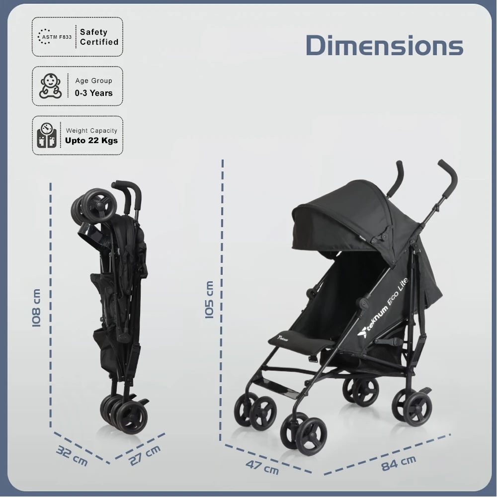 The TEKNUM Eco Lite 2 Stroller is a lightweight yet durable stroller designed to make outings with your little one more convenient and stylish. With its compact and ergonomic design, this stroller is easy to maneuver and store, making it ideal for travel and daily errands. The sleek black color complements any lifestyle, while the included cup holder offers added convenience for parents on the move. It features a multi-position reclining seat, secure 5-point harness, and a spacious basket for all baby essentials. Built for comfort and safety, the Eco Lite 2 is a practical choice for modern parenting.
