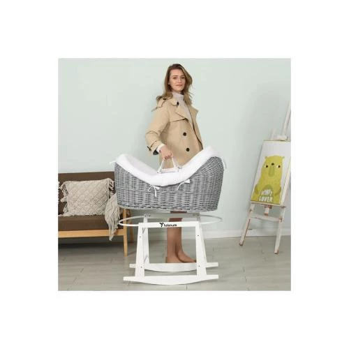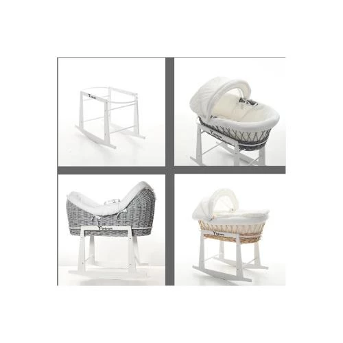 Teknum Infant Wicker Pod Moses Basket with White Waffle Beddings & Rocker Stand -Wooden Grey