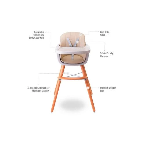 The Teknum Premium Dual Height Wooden High Chair in elegant Ivory by SAMBOX is a multifunctional solution that grows with your child, offering both safety and sophistication for every mealtime. Designed to transition seamlessly from a full-size feeding chair to a toddler booster seat, this chair features sturdy beech wood legs, a soft PU cushioned seat, and a removable PP tray that is dishwasher safe. Its minimalist ivory tone complements any modern home décor while providing a comfortable and secure seating experience. Equipped with a five-point safety harness, anti-skid foot covers, and an X-shaped stabilizing frame, it ensures maximum stability and safety for your little one. With two height settings (83.5 cm and 65 cm) and a 3-position adjustable tray, this high chair is suitable from 6 to 36 months and supports up to 15 kg. Easy to assemble and clean, its the ideal combination of function, comfort, and aesthetic appeal.