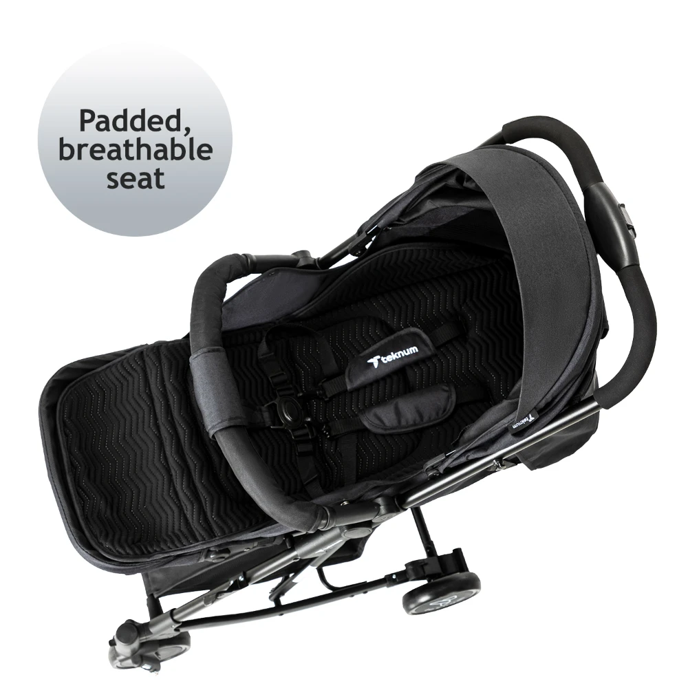 Bring color and versatility into your daily routine with the Teknum Stroller featuring a built-in rocker and an orange diaper tote bag. The stroller is built to support everyday needs with an ultra-smooth rocker mechanism that offers soothing motion when needed. Its modern black chassis offers a bold yet neutral base, perfect for matching with any accessories. The vibrant orange diaper tote bag adds a burst of energy and practicality. Large compartments and easy-access pockets ensure you have everything in one place—snacks, bottles, wipes, and more. Whether you're navigating city sidewalks or relaxing in a park, this stroller and tote duo keeps comfort, convenience, and style within reach.
