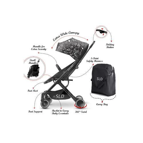 Experience ultimate convenience and comfort with the Travel Lite Stroller - SLD by Teknum, the lightest stroller designed for modern parents. Weighing only 5.7 kg, this stroller features a quick one-second, single-hand fold/unfold mechanism, making travel and storage effortless, and it fits perfectly in most aircraft cabin luggage compartments with its compact folded size of 604130 cm. Its aviation-grade aluminum alloy double-triangle frame ensures robust strength while maintaining lightweight ease. The stroller boasts a smooth, shock-absorbing 360° swivel lockable wheel system that glides easily over rough roads, grass, slopes, and desert terrain, delivering a comfortable ride for your baby and a hassle-free push for you. Equipped with a wide seat base and a multi-position recline backrest adjustable from 95° to 180°, your little one can sit or nap comfortably. The adjustable canopy with a transparent skylight window offers protection and visibility. Safety is paramount with a 5-point seat harness and reliable stroller brakes operated by a single foot. Included accessories like a stroller carry bag, mosquito net, and removable seat cover add extra convenience and cleanliness, making this stroller the perfect travel companion for babies aged 0 to 4 years.